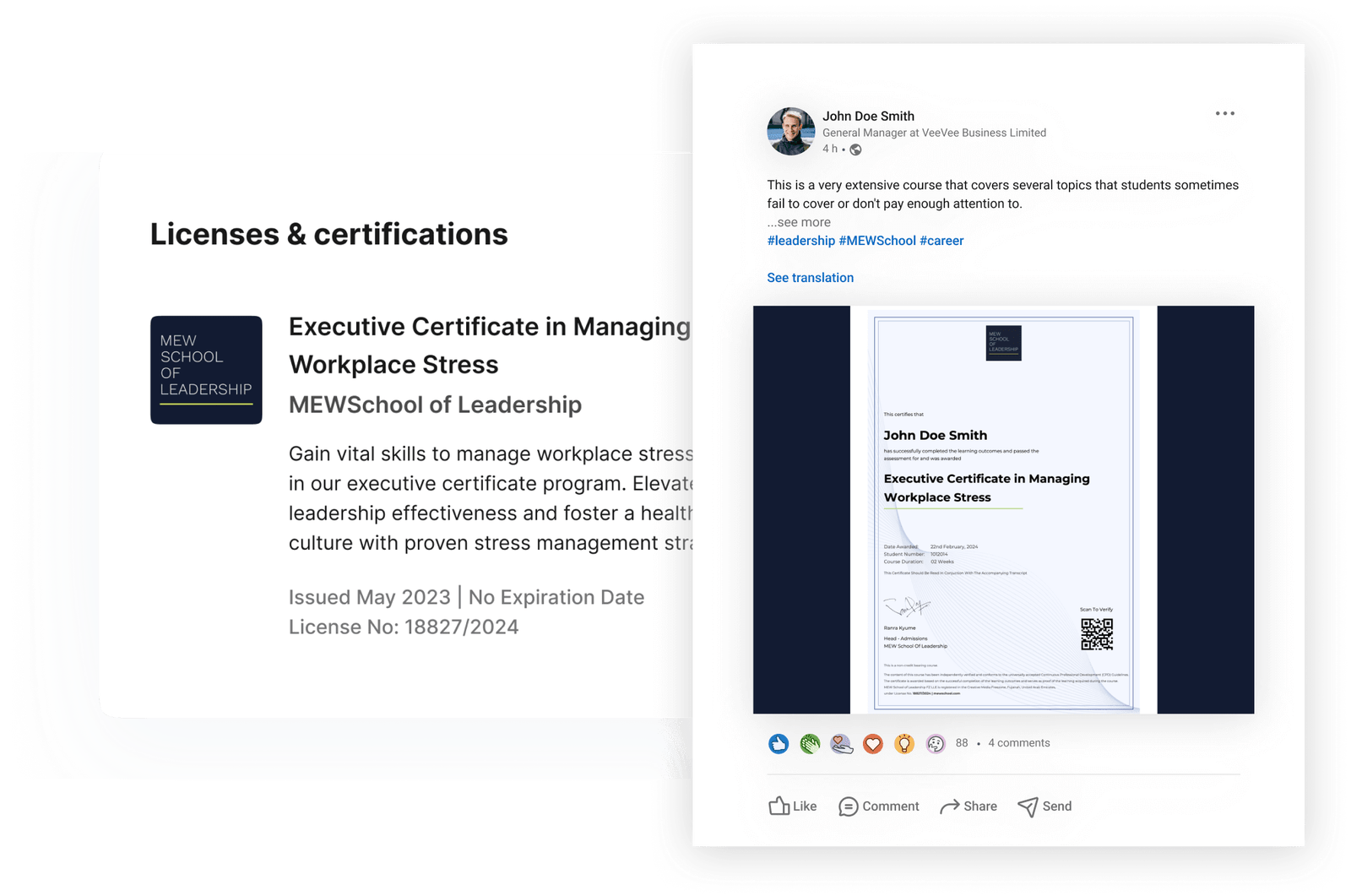 - Apply practical Skills in your workplace and get feedback via the in-portal feedback system.