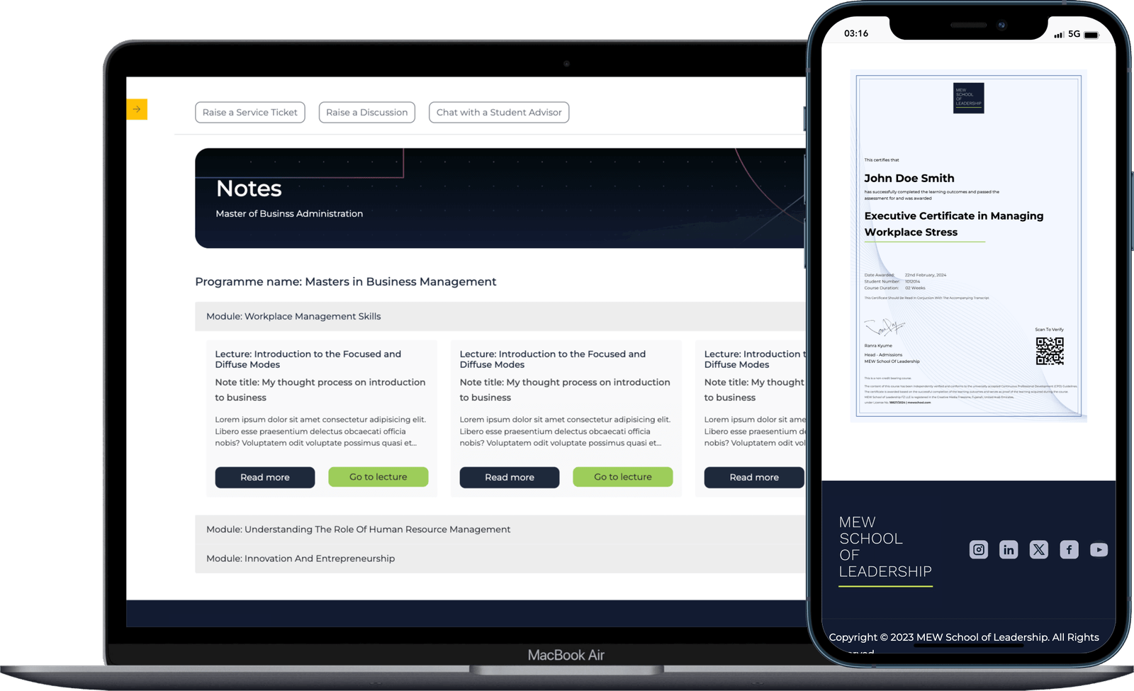 MEW School offers digital certificates for all its courses to offer you a comprehensive way to showcase your knowledge and achievement. The certificates are verifiable via QR Code and are valid for lifetime.