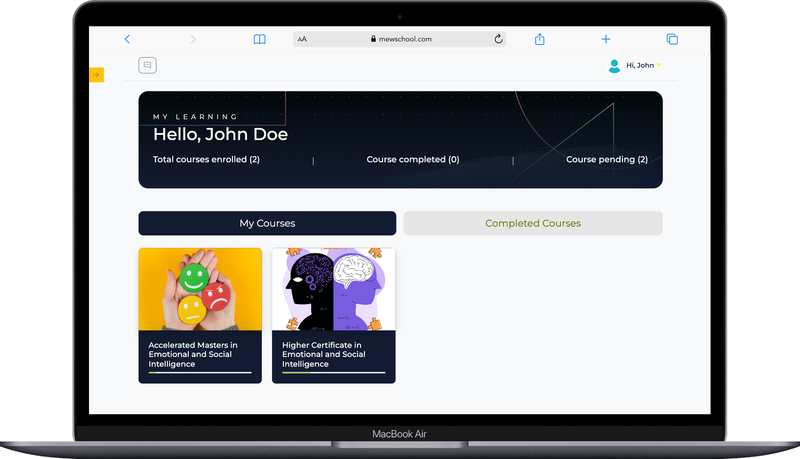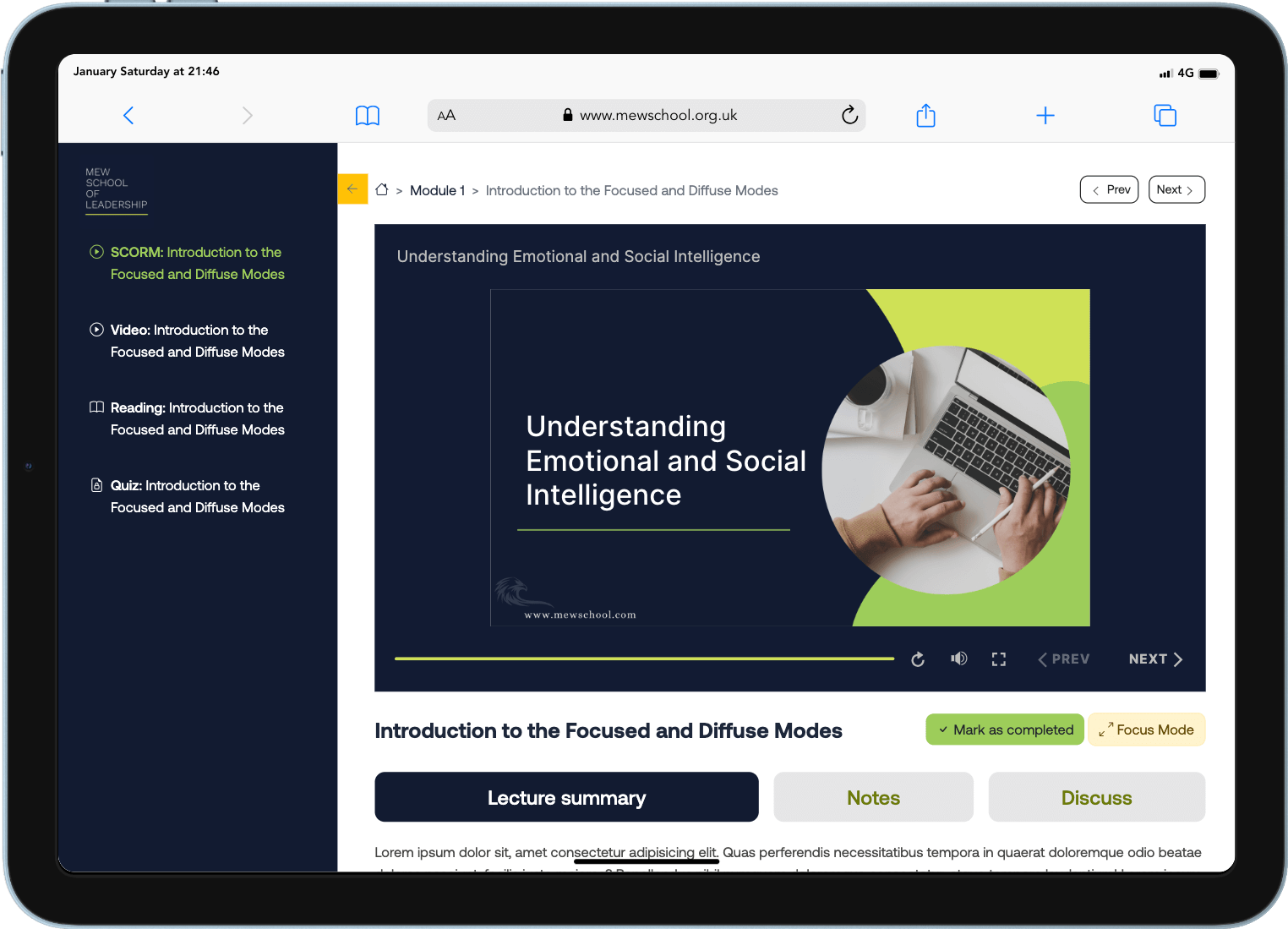 In this format, you will learn fully online via our MEWBook Learning Portal. All the learning and assessment will take place in-portal, and you will manage your journey via in-portal online tools, settings, and support.
