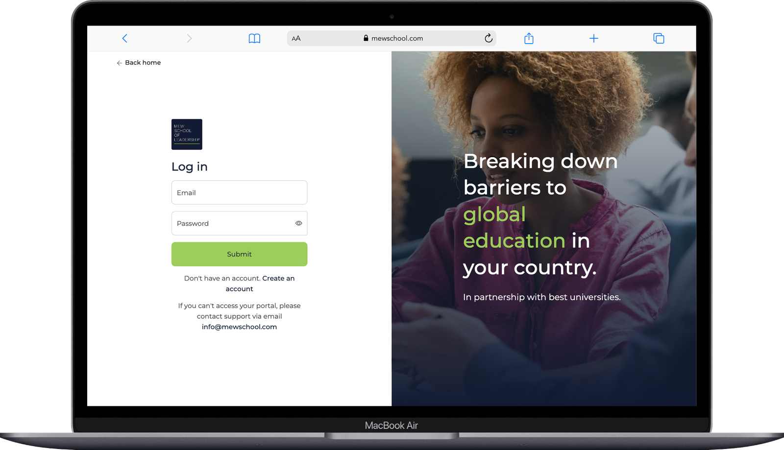 - Pay online or through a bank transfer and get access to the MEWBook learning portal.